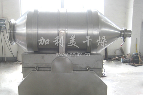 EYH 二維運動混合機的轉筒可同時進行二個運動,一個為轉筒的轉動,另一個為轉筒隨擺動架的擺動。被混合物料在轉筒內隨轉筒轉動、翻轉、混和的同時,又隨轉筒的擺動而發生左右來回的摻混運動,在這兩個運動的共同作用下,物料在短時間內獲得充分的混合。EYH二維混料機適合所有粉、粒狀物料的混合。