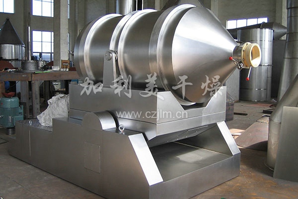 EYH二維混料機的轉筒可同時進行二個運動,一個為轉筒的轉動,另一個為轉筒隨擺動架的擺動。被混合物料在轉筒內隨轉筒轉動、翻轉、混合的同時,又隨轉筒的擺動而發生左右來回的摻混運動,在這兩個運動的共同作用下,物料在短時間內獲得充分的混合。EYH二維混料機適合所有粉、粒狀物料的混合。